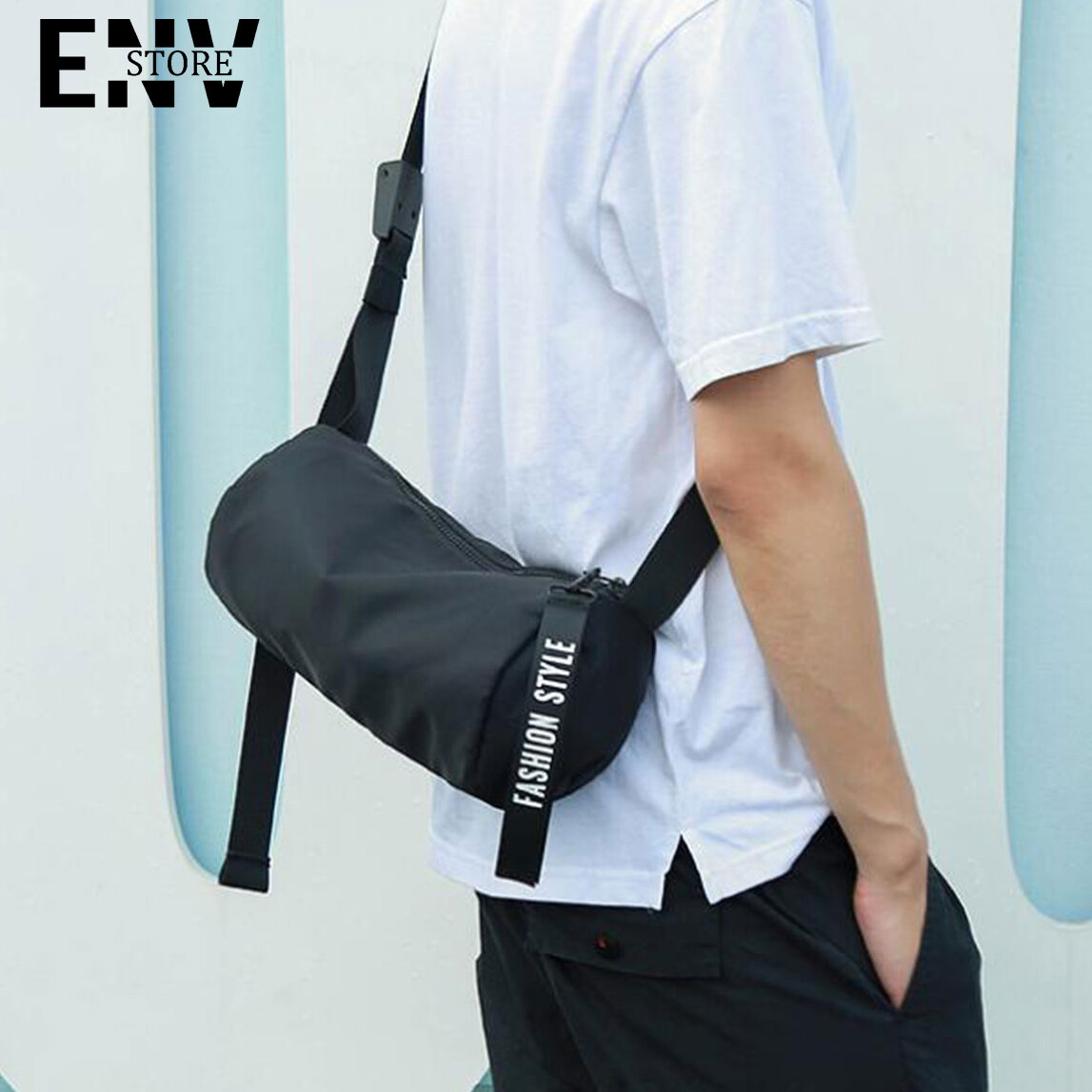 ENV กระเป๋าสะพายข้างผู้ชายสไตล์ฮิปฮอปสไตล์สปอร์ตเรียบง่ายกระเป๋ากันน้ำ
