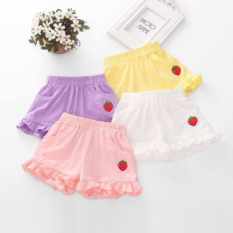 2-7ปีเด็กสาวกางเกงขาสั้นฤดูร้อนสตรอเบอร์รี่พิมพ์กางเกงขาสั้นผ้าฝ้ายกางเกง ส่วนลด