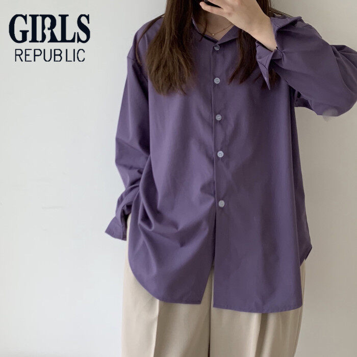 [มีเก็บเงินปลายทาง] Girls Republic เสื้อเชิ้ตผญ เสื้อเชิ้ตแขนยาวสีม่วง