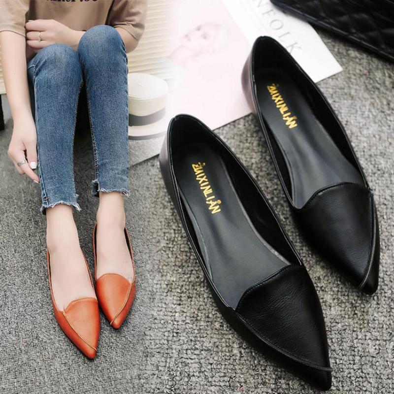 VOGUEBIBLE 2020 ใหม่ปลายแหลมรองเท้าพื้นราบหญิงปากตื้นรองเท้ารองเท้าลำลองแบบปีกสั้น รองเท้าคัตชูฤดูใบไม้ผลิใบไม้ร่วงเรียบง่ายโฟร์ซีซั่นรองเท้าสตรี เชคราคา